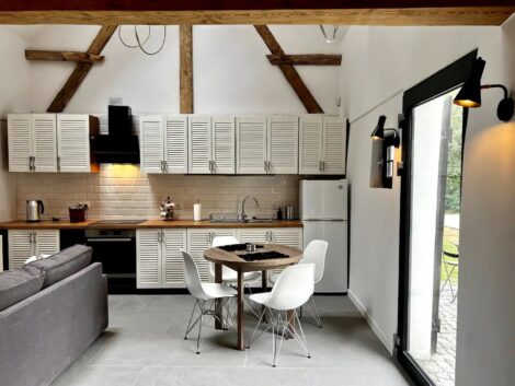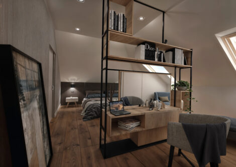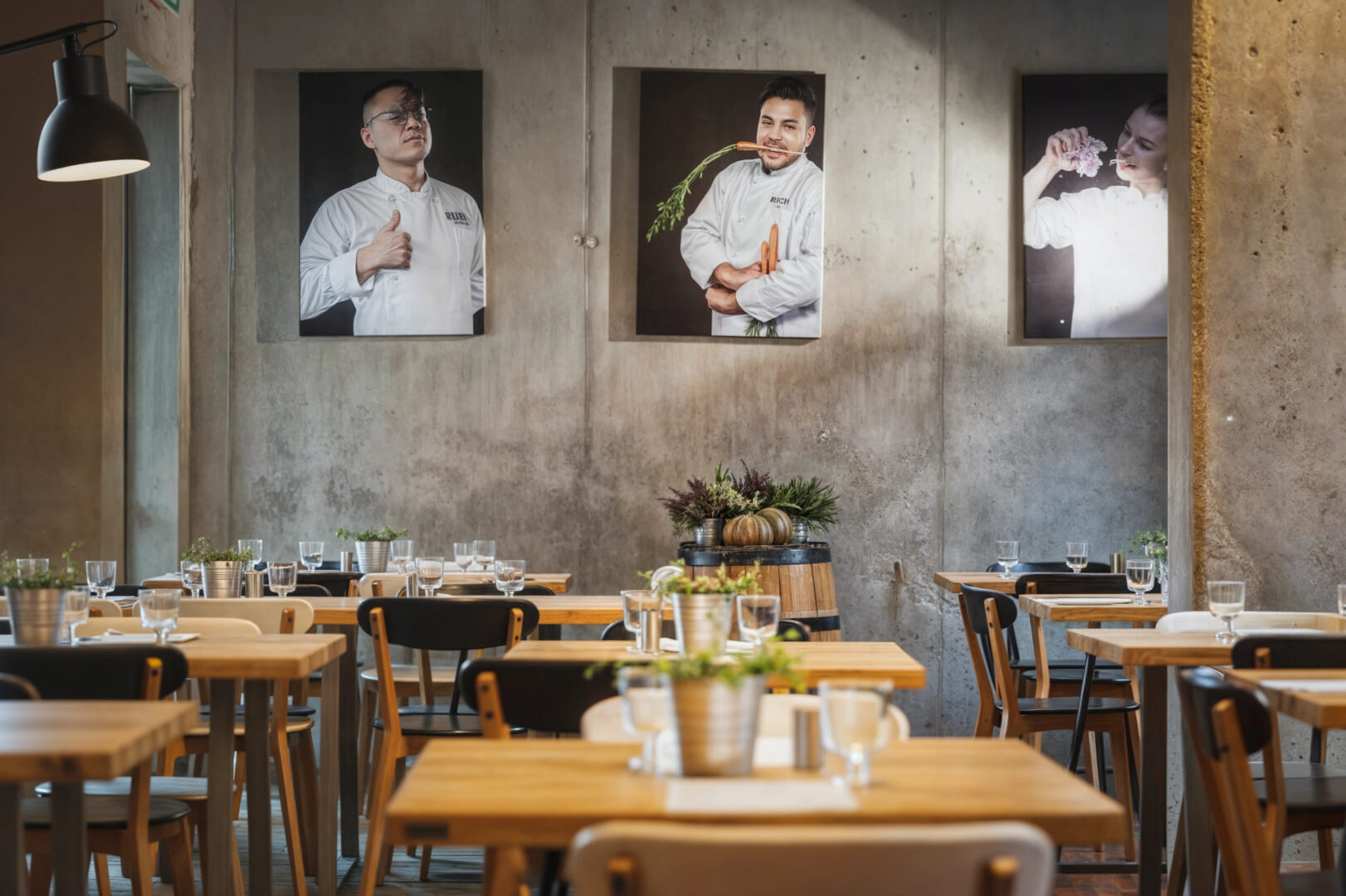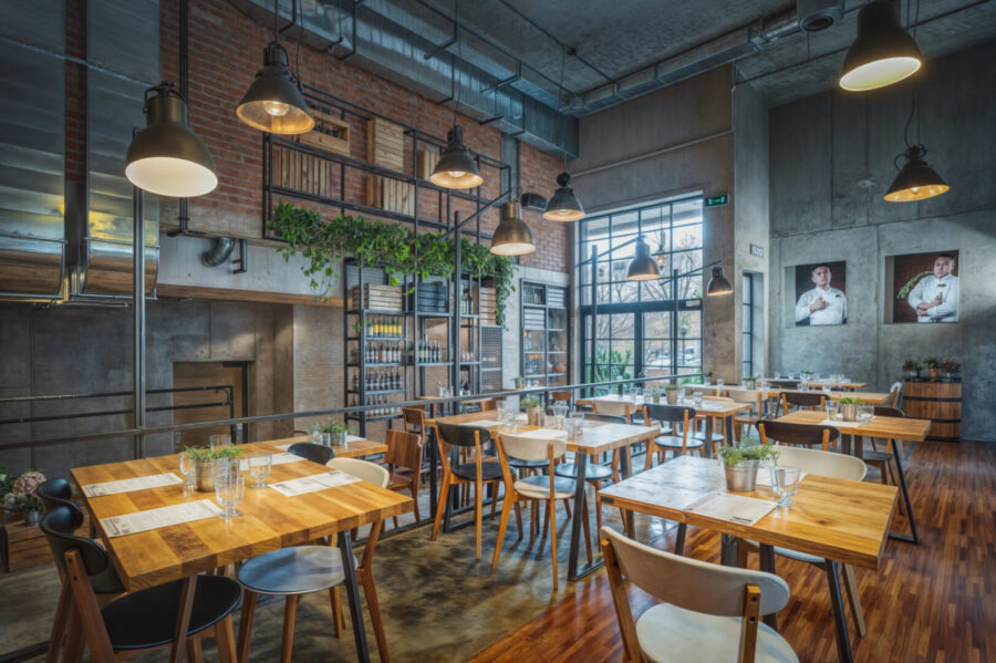 Restauracja ma aż 3 poziomy dostępne dla gości, zaczynając od sutereny przewidzianej na przyjmowanie zamkniętych wydarzeń towarzyskich, przez ogólnodostępny parter po antresolę przystosowaną do spotkań biznesowych. Wielkość lokalu zapewniła miejsce dla zaproponowania atrakcji w postaci otwartej kuchni na potrzeby przygotowywania pizzy, strefy baru oraz przestrzeni dla gości. Z szacunku dla tektoniki budynku, i jego elementów zabytkowych staraliśmy się nie konkurować wystrojem, odsłaniając naturalne materiały konstrukcyjne w postaci cegły i betonu.